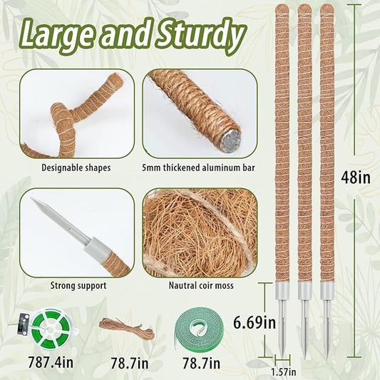 3 Pack Moss Pole, 48 Inch Monstera Plant Support, Moss Poles for Climbing Indoor Plants, Bendable Coco Coir Plant Support Stakes for Potted Plants, Pothos, Philodendron