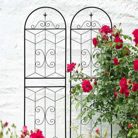 Metal Garden Trellis Rustproof Trellis for Climbing Plants Outdoor Flower Support (Black-2 Pack, 71"x19.7")