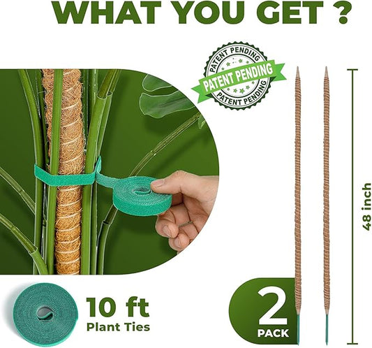 2 Pack 48 Inch Bendable Moss Pole Monstera Plant Support Stakes for Indoor Plants - Tall Moss Stick Trellis for Potted Climbers - Stem Support Accessories for Climbing Houseplants