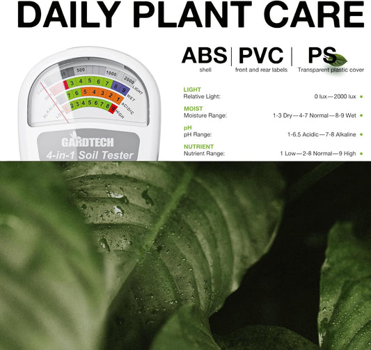 Gardtech Soil Moisture Meter - 4-in-1 Soil Test Kit Without Battery, Soil Moisture/Light/Nutrients/pH Meter for Plant, Garden, Lawn, Indoor & Outdoor (White)