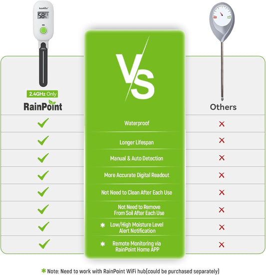 RAINPOINT Smart Digital Wireless Plant Moisture Meter Houseplant Indoor,WiFi Hub Needed,Capacitive Probe,Leave-in Soil Hygrometer Sensor,Real-time Monitor Outdoor Greenhouse Gardening(Two-Pack Set)
