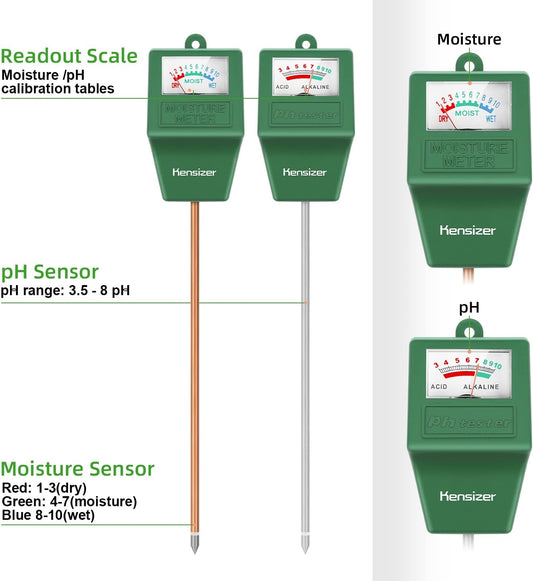 Kensizer Soil Tester, Soil Moisture/pH Meter, Gardening Farm Lawn Test Kit Tool, Digital Plant Probe, Water Hydrometer for Indoor Outdoor, No Battery Required
