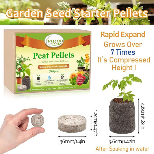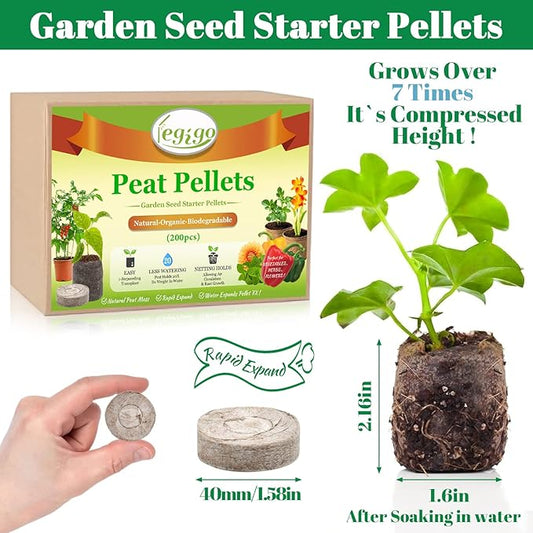 Legigo 200 Pcs 36mm Seed Starter Peat Pellets Pods for Seedlings- Compressed Seed Starting Pellets Seed Starter Pods Plugs Soil Peat Pods for Starting Seeds, Garden Planting Herb Flower Vegetables