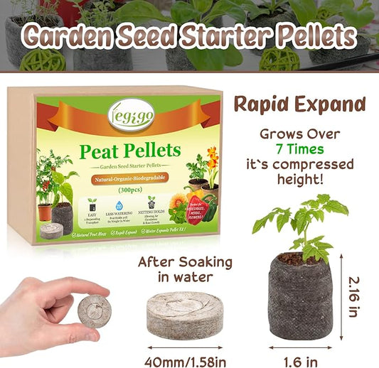 Legigo 300 Pcs 40mm Seed Starter Peat Pellets Pods for Seedlings- Compressed Seed Starting Pellets Seed Starter Pods Plugs Soil Peat Pods for Starting Seeds, Garden Planting Herb Flower Vegetables