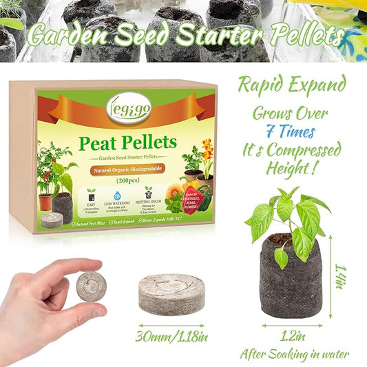Legigo 200 Pcs 30mm Seed Starter Peat Pellets Pods for Seedlings- Compressed Seed Starting Pellets Seed Starter Pods Plugs Soil Peat Pods for Starting Seeds, Garden Planting Herb Flower Vegetables