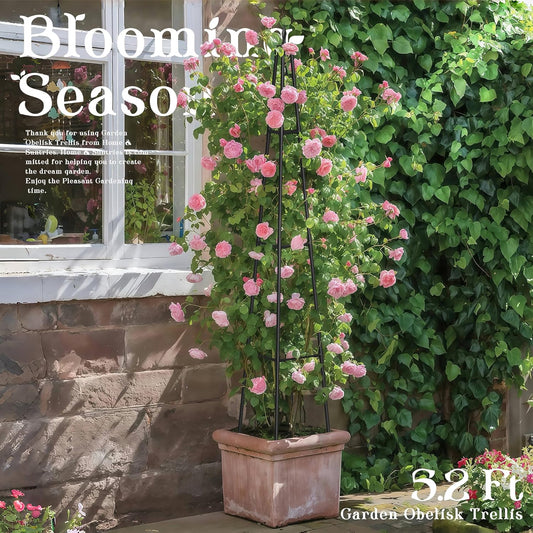 5.2FT Obelisk Trellis for Climbing Plants Outdoor, 16mm Rust-Proof Extra Thickened Plastic-Coated Metal Pipes, Indoor Climbing Support for Potted Plants, Vines, Flowers Stands,Black