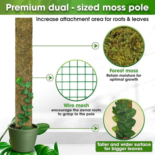 DUSPRO 59’’ Flat Mesh Moss Poles for Climbing Plants Monstera Flat Stacks for Tall Plant with Real Moss Moss Pole for Indoor Plants Plant Stick Support Tall Indoor Plants Support Stakes (1pc., 59'')