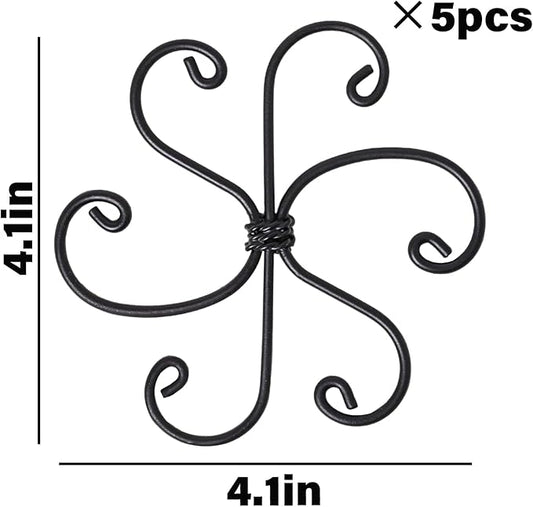 Black Monstera Plant Support Hook - 6.5 * 6.5IN -5 Piece Set, Durable Metal Stem Supports for Indoor Plants, Leaf Holder & Fishbone Cactus Stake, Stylish Design for Healthy Growth & Easy Care