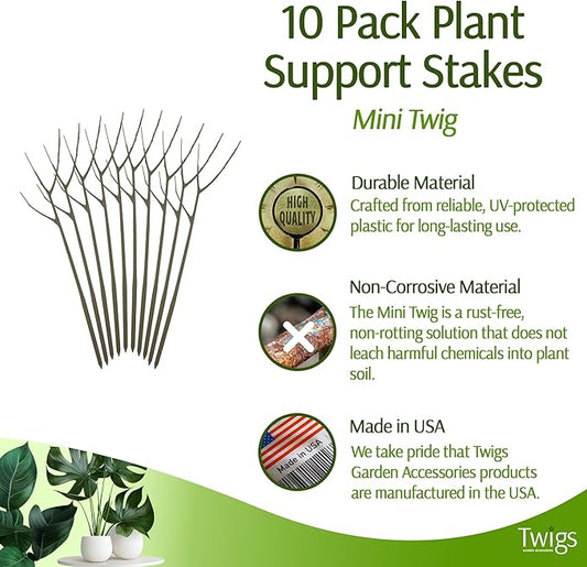 Twigs - Plant Support Stakes for Indoor, Outdoor & Climbing Plants, Gardening Supplies, Garden Accessories, Trellis & Ring Alternative, Made in USA - Moonstone, 10 Pack, 12" L, Mini Twigs