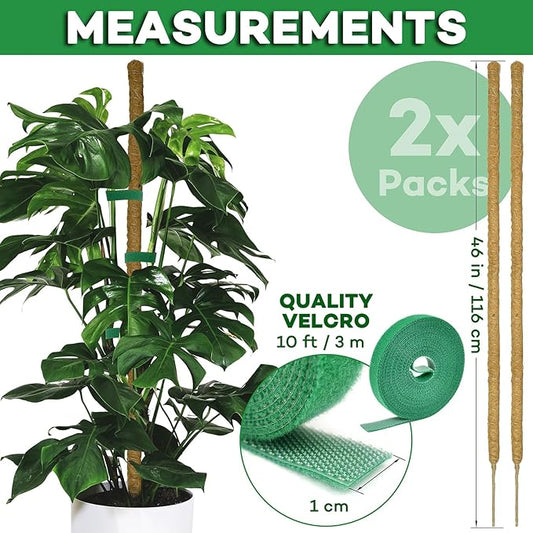 2 Pack Moss pole - 46 Inch Moss Pole Indoor - Monstera Plant Support - Plant Stakes for Indoor Plants - Plant Stiks support Tall - Moss Pole for Climbing Plants support - Monstera Pot - Moss Poles