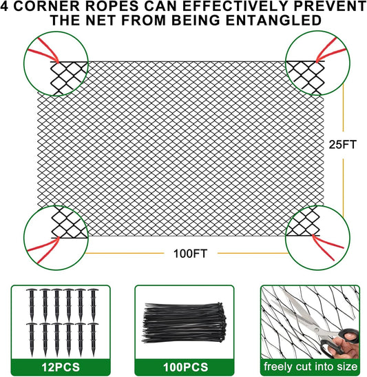 OGORI 25' x 50' Bird Netting Heavy Duty Nylon 3/4" Mesh Garden Netting Protect Fruit Trees, Plants and Vegetables