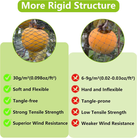 10x50ft Bird Netting for Garden Woven Mesh Garden Netting for Plants, Vegetable, Fruit Trees, Blueberry Bushes, Strawberries Against Birds, Deer, Squirrels and Other Animals