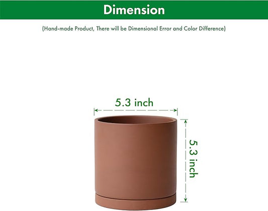 D'vine Dev 5 Inch Rust Terracotta Plant Pot with Drainage Hole and Saucer, Round Cylinder Planter Pot for Indoor Plants, Set of 2, 40-V-B-2