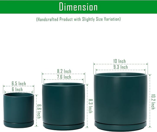 D'vine Dev 6 Inch & 8 Inch & 10 Inch, Set of 3 Round Ceramic Planter Pot with Drainage Hole and Saucer, Teal, 94-T-L-9