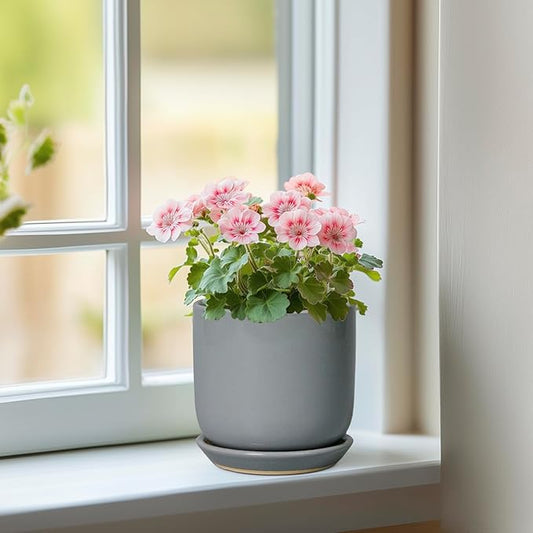 10 Inch Plant Pot - Ceramic Pot for Indoor Plants Outdoor Planter Large Flower Pot with Drainage Hole and Saucer Cylinder Gray