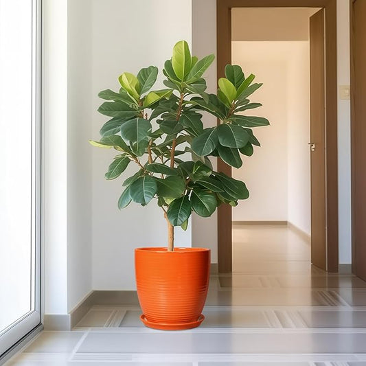 12 Inch Pots for Plants - Ceramic Plant Pots with Drainage Hole and Saucer, Modern Planter for Indoor Outdoor, Round Flower Planters, Porch Home Garden Decor, Gifts for Women, Orange