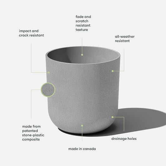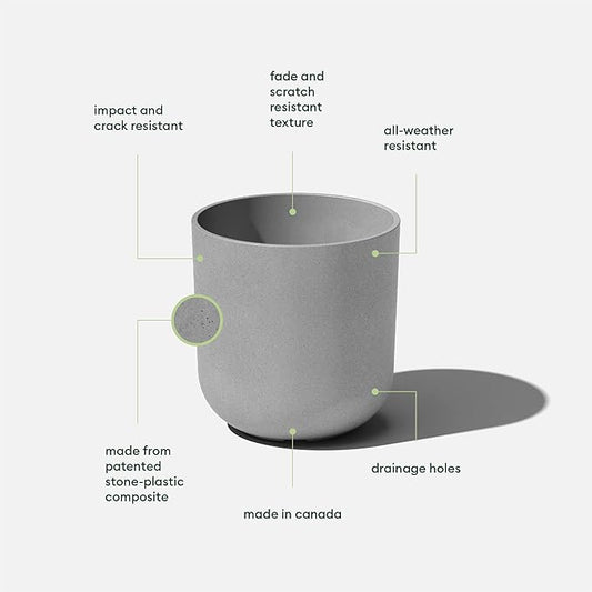 Veradek Mason Series Lima Planter - Round Planter for Indoor or Outdoor Porch/Garden | Made from Plastic-Stone Composite with Drainage Holes | Modern Décor for Succulents, Flowers, Small Plants