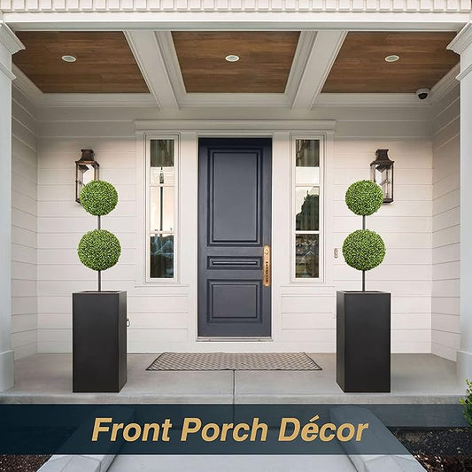 Metallic Heavy Planter for Outdoor Plants, 14Lx14Wx30H Inches, Tall Metal Planter Box with Hand Brushed Gold Edge for Outside & Indoor, 25 Pounds, No Assembly and Seamless, Set of 2 (Black)