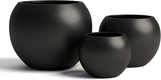 DTY Signature Mount Sherman Lightweight Durable Modern Fiberstone Sphere Planter for Indoor & Outdoor Drainage Hole & Rubber Plug Weather Resistant, 17" H x 21" Dia 14.4" Pot Opening - Large, Black