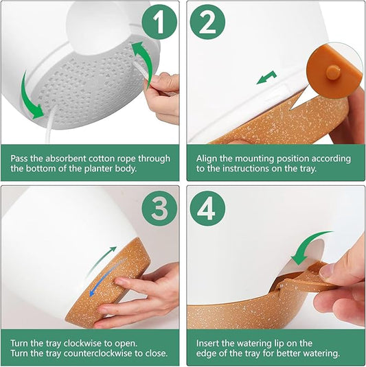 5Pack Self Watering Plant Pots for Lazy People, 7/6.5/6/5.5/5 Inch,White Plastic Self Watering Planter for All Houseplants,Succulent, African Violets,Snake Plants, Flowers and Cactus