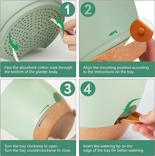 Self Watering Plant Pot with Drainage Hole,Plant Pots Outdoor Flower Pots for Indoor Plants,Modern Green Plastic Self Watering Planters Succulent Pot 7pcs/Set