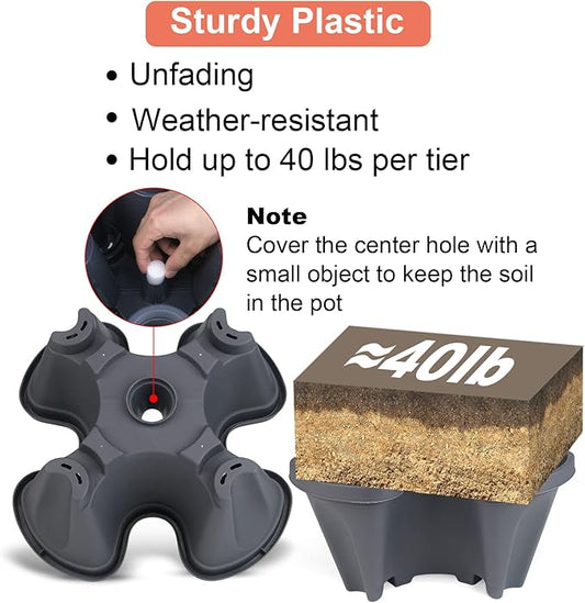 Vertical Planter 3 Tier Stackable Planters Garden Planters Strawberry Herb Flower and Vegetable Planter Indoor Outdoor Gardening Pots with Removable Wheels and Tools