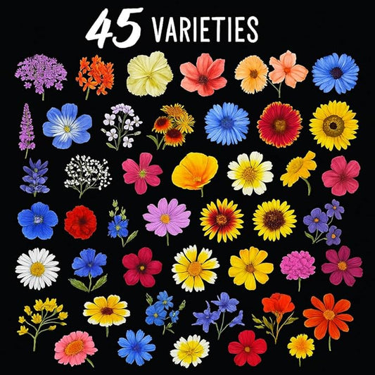 Package of 100,000 Wildflower Seeds - Save The Bees Wild Flower Seeds Collection - 45 Varieties of Pure Non-GMO Flower Seeds for Planting Including Milkweed, Poppy, and Lupine