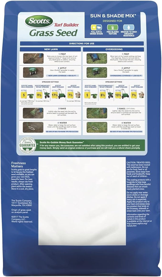 Scotts Turf Builder Grass Seed Sun & Shade Mix, Grows in Extreme Conditions & Spreads for a Durable Lawn, 3 lbs.
