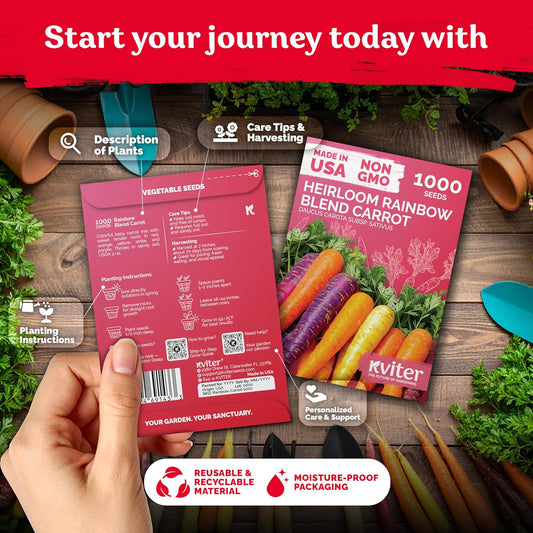 KVITER 1,000 Rainbow Carrot Seeds (Daucus Carota) - Baby Carrots Mix, Sweet & Tender Taste - Heirloom & Organic Carrots Seeds for Planting in Vegetable Garden, Raised Beds & Containers