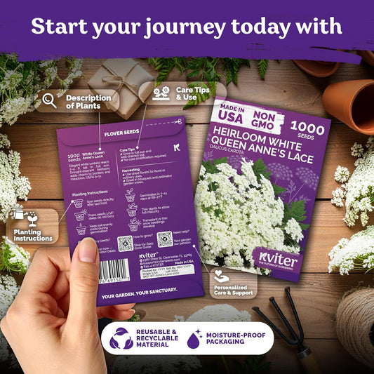 KVITER 1000 White Queen Anne's Lace Seeds (Ammi Majus) – Bishop Flower, Heirloom, Non GMO & Organic Wildflower, False Queen Annes Lace – Pollinator-Friendly Flower Seeds to Plant Outside in any Garden