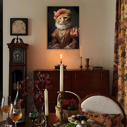 Jatinoo Orange Cat Gothic Wall Art - 11.5x15 inch Framed Canvas Print, Witchy Dark Academia Vintage Home Decor for Halloween, Moody Aesthetic Room Poster for Cat Lovers