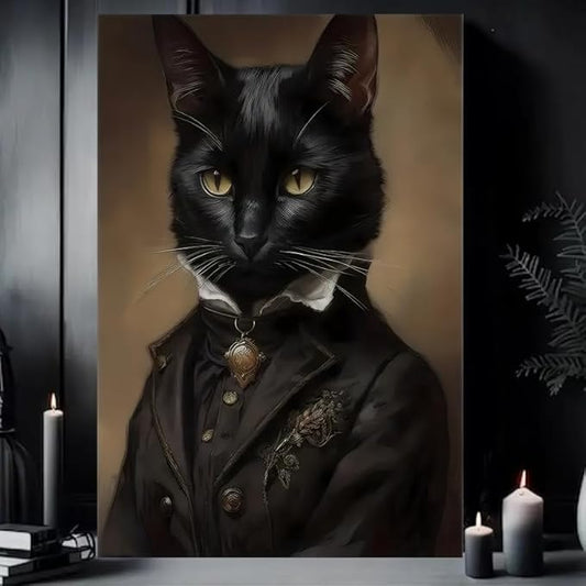 Black Cat Canvas Framed Wall Art Poster 11.5x15 Inch - Gothic Bathroom Decor, Dark Academia Home & Room Wall Decor Posters for Apartment, Cat Lover Gifts, Halloween Decorations
