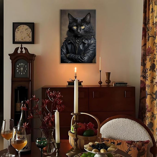 Jatinoo Gothic Halloween Decor - Black Cat Framed Canvas Art Print, Witchy Moody Wall Decor for Living Room, Goth Home Accessories, 11.5x15 Inch Vintage Style