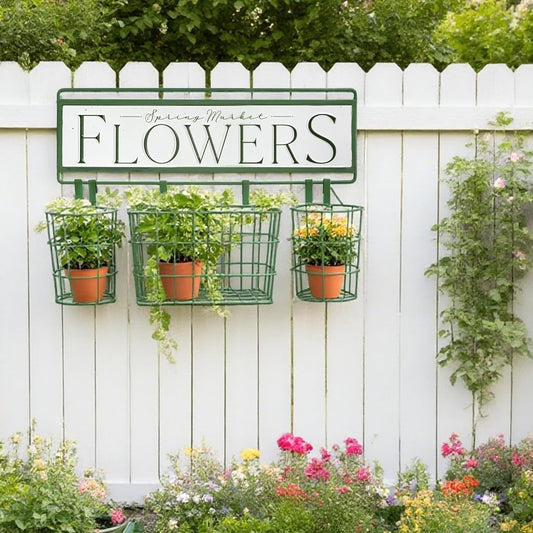 Rustic Vintage Metal Wall Planter Basket Hanging Mount Multiuse Storage Plant Stand for Plants, Flowers, Outdoor Garden Home Decor