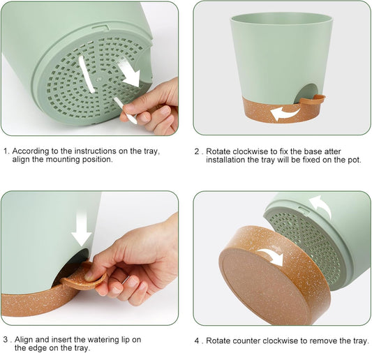 8-Inch Plant Pots, Self-Watering Planters with Drainage Holes & Saucers for Indoor and Outdoor Plants (2-Pack, Green)