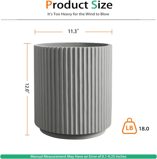 Round Concrete Planter Outdoor Indoor, Large Cement Plant Pots for Flowers (Vertical Gray, 12 inch)