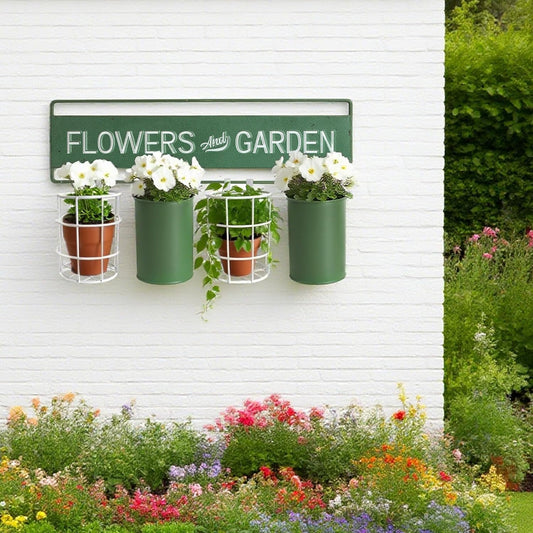 Vintage Metal Hanging Flower Pot Rustic Wall Mounted Planter, Decrative Farmhouse Plants Holder Succulents Tubs for Garden Railing Fence Patio Yard Outdoor Decor