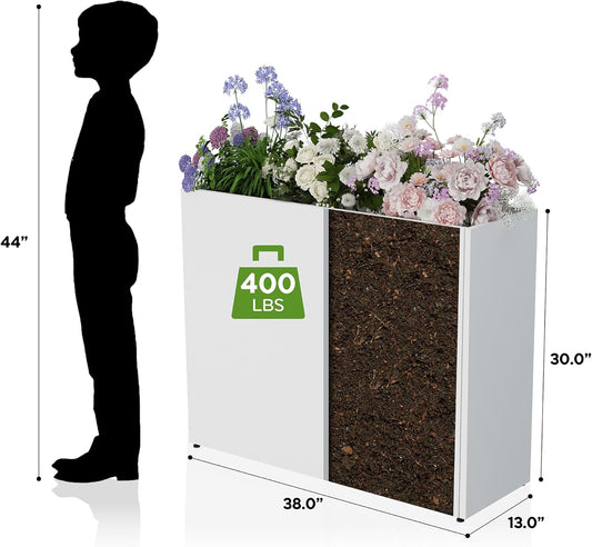 Tall Metal Planter for Outdoor Plants,38"Lx13"Wx30"H All-Weather Durable Plant Box,Large Rectangular Planter with Drainage Holes & Removable Shelf,Modern Decor for Tall Small Plants, Trees, Flowers