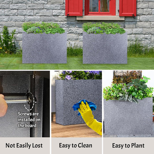 Metal Planter Box Rectangular Planter, 35.5" Lx 10" Wx 28" H Terrazzo Large Planters with Drainage Holes, Galvanized Steel Tall Planters for Patio/Porch