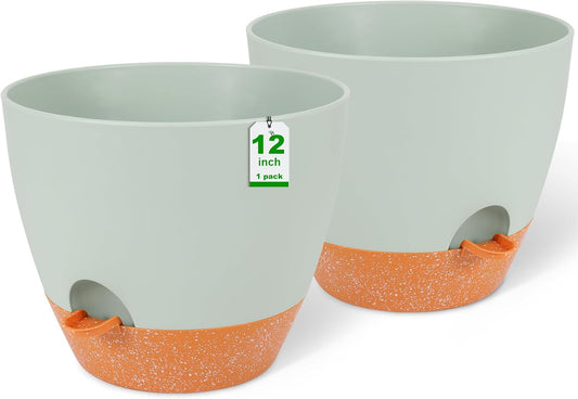 GARDIFE 12 inch planters, Plant Pots,Self Watering Pots, 2 Pack Large Plastic Flower pots with Deep Reservior and High Drainage Holes for Indoor Outdoor Plants and Flowers, Green
