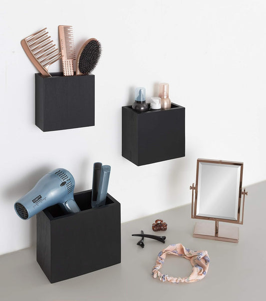 Kate and Laurel Domio Wall Hanging Planter Shelves, Set of 3, Black, Geometric Nesting Planter Collection