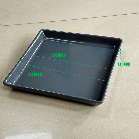 Square Plant Saucer 6 Inch 2 Pack,Plant Trays for Pots, Gray Ceramic Plant Saucers for Indoors Outdoors, Plant Drip Tray 4 6 8 10 12 14 Inch