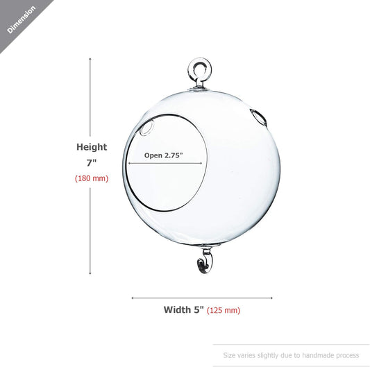 WGV Hanging Terrarium Globe, Width 5", Height 7", Double Hook, DIY Air Succulent Planter, Clear Glass Vase Orb, Candle Holder for Windowsill Outdoor Garden Decor, 1 Piece