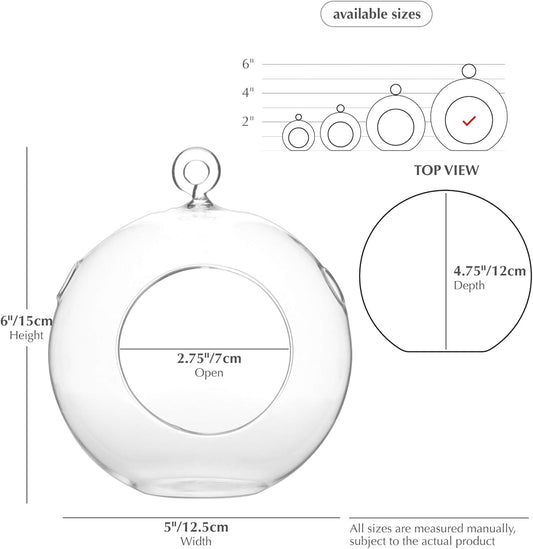 WGV Hanging Terrarium Globe, Width 6", Height 6.5", DIY Air Succulent Planter, Clear Glass Vase Orb with Flat Bottom, Candle Holder for Windowsill Outdoor Garden Decor, 1 Piece