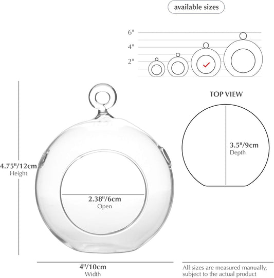 WGV Hanging Terrarium Globe, Width 4", Height 4.75", DIY Air Planter, Clear Glass Round Vase, Candle Holder, Home Office Decor Orb, 1 Piece