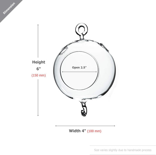 WGV Hanging Terrarium Globe, Width 4", Height 6", Double Hook, DIY Air Succulent Planter, Clear Glass Vase Orb, Candle Holder for Windowsill Outdoor Garden Decor, 1 Piece