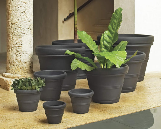 Crescent Garden Brunello Classic Rolled Rim Planter Pot, Indoor/Outdoor Weather-Safe Round Plant Pot, 12'' (Caviar Black)