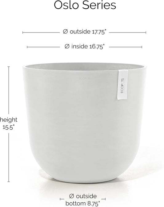 Ecopots Oslo Durable Modern Round Indoor/Outdoor Recycled-Based Composite Flower Pot Planter, Pure White, 17.75"