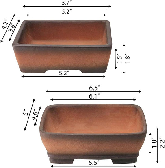 MUZHI 2 Pack Handmade Color Gradational Terracotta Bonsai Pot 5 Inch and 6 Inch with Drip Tray, Breathable Unglazed Rectangle Ceramic Planter for Tree Succulent Cactus