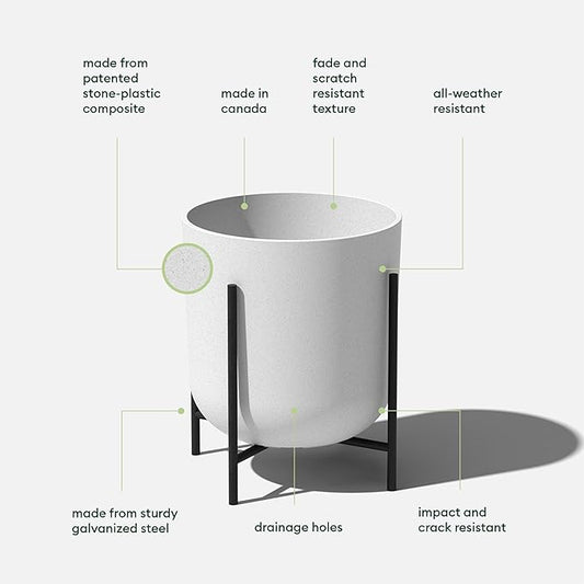 Veradek Mason Series Raised Lima Planter - Round Planter for Patio/Balcony | Plastic-Stone Composite w/Metal Plant Stand | Modern Décor for Plants
